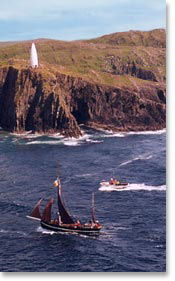 The restoration of The Ilen, Ireland’s last coastal trading boat in existence, is being undertaken at Hegarty’s boatyard at Oldcourt just two kilometres away from Inish Beg.Built at the Fisheries School in Baltimore in 1926, The Ilen spent seventy tough years in the Falklands transporting sheep and cattle between the islands before returning home to Baltimore in 1998.